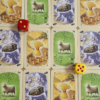 Cada turno lanzaremos los dados y el resultado determinará qué materiales serán producidos en esa ronda, dependiendo del terreno activado será el material producido y todos aquellos que tengan poblados colindantes con estos terrenos recibirán una carta de recursos, a menos de que tengan una ciudad, en cuyo caso recibirán dos.