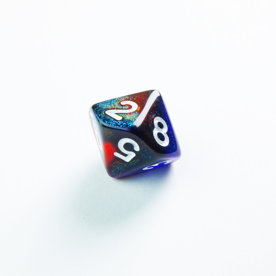 Conjunto de 7 dados acrÃlicos de primera calidad. La lÃnea Galaxy Series tiene colores atrayentes y efectos resplandecientes gracias a sus partÃculas de purpurina