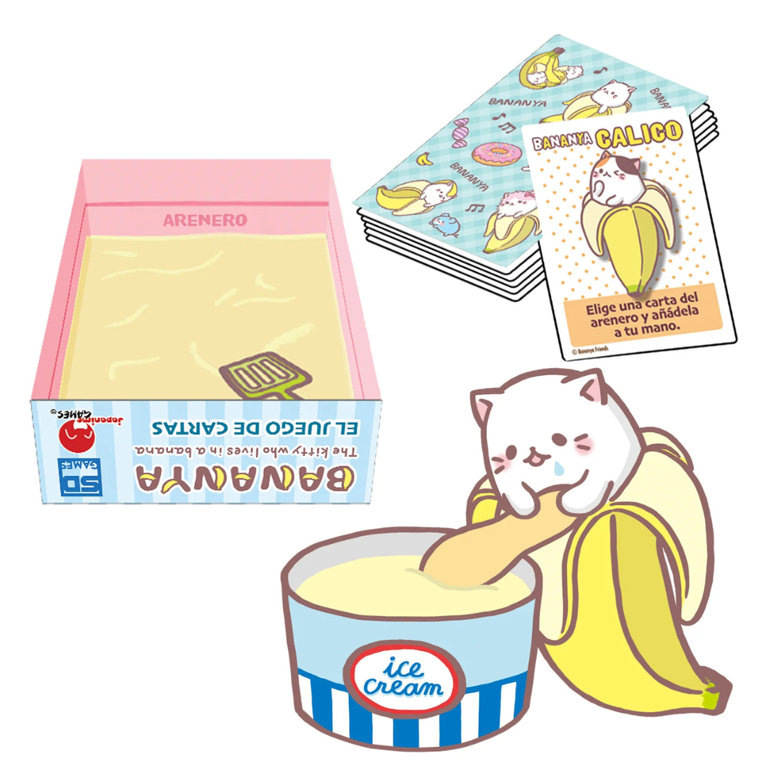 Pero no todo es tan inocente como parece… hay cartas especiales que te permiten intercambiar, robar o hacer descartar cartas a otros jugadores. ¡Porque en el mundo de los Bananya, los gatitos también saben cómo ser competitivos!