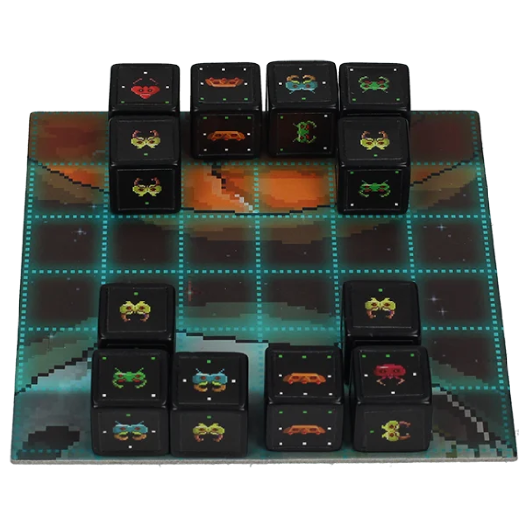 Imagina una mezcla entre los videojuegos clásicos de naves y el ajedrez, pero con dados.
