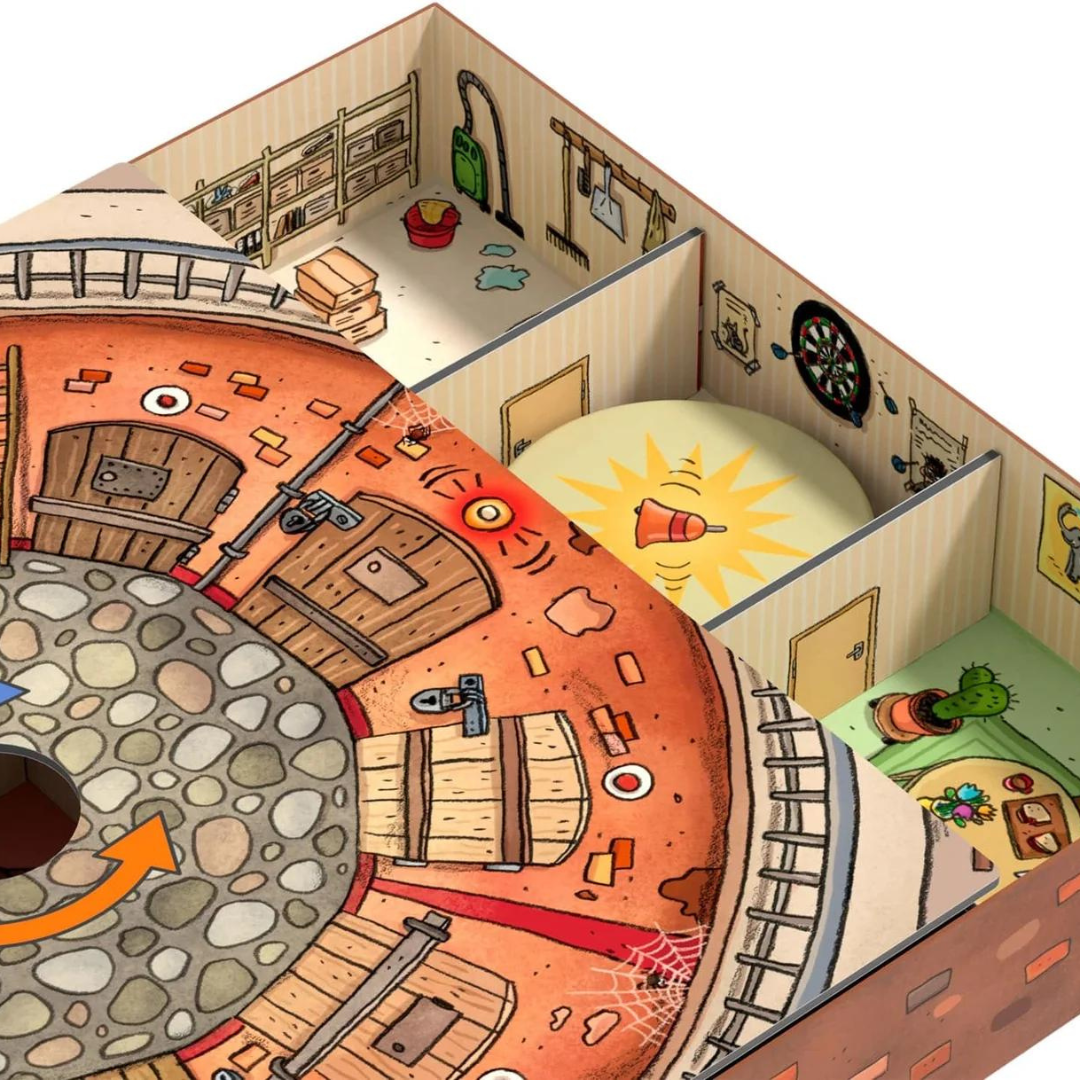 ¡Los malhechores pretenden fugarse! El comisario Ratónez les sigue la pista, pero necesita el olfato de sabueso de jugadores y jugadoras: ¿Quién fue el último que estuvo en la celda donde se encuentra el túnel para la fuga?