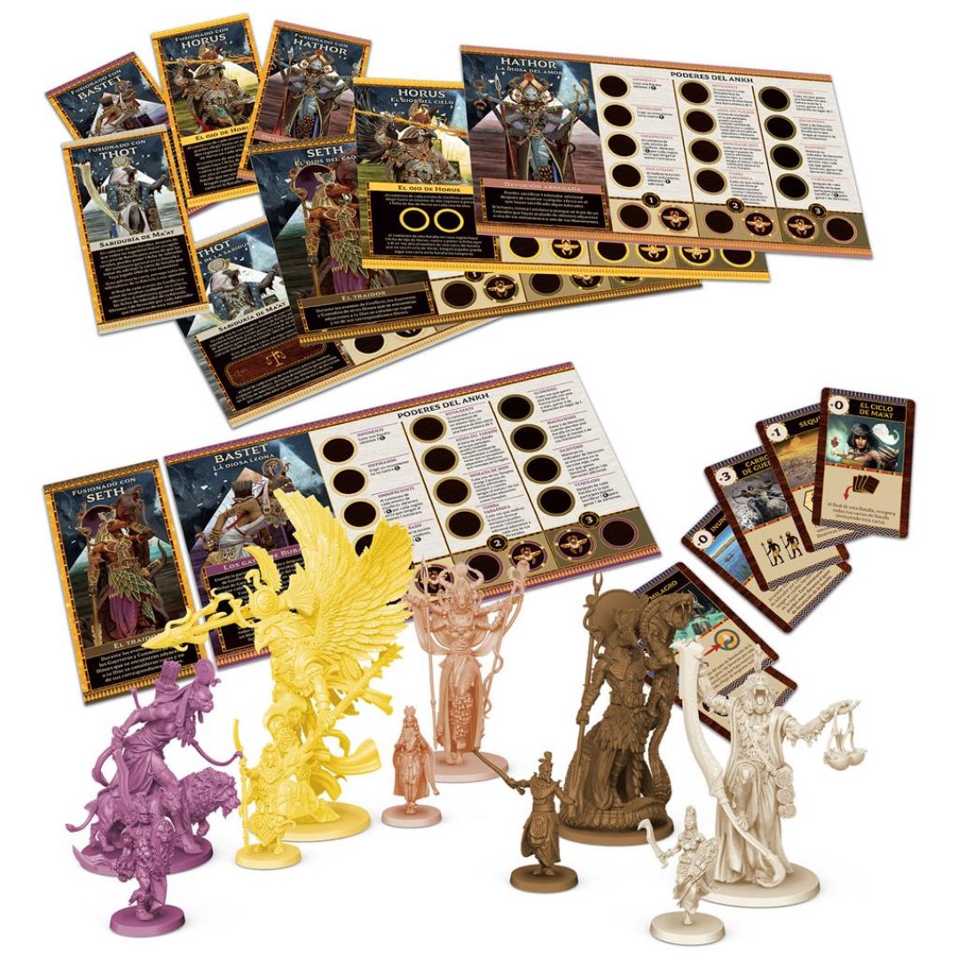 Esta expansión contiene un nuevo conjunto de 5 Dioses egipcios, cada uno de los cuales aporta sus propias capacidades y guerreros para su lucha por no caer en el olvido. Los Dioses de Panteón proporcionan nuevas opciones al jugador que los controla, pero también afectan a los demás, ya que cambian la disposición del tablero con su presencia. Si con los Dioses de la caja básica ya tienes a tu disposición una gran cantidad de estrategias y sinergias que dominar, ¡con esta expansión las verás incrementadas de manera exponencial!