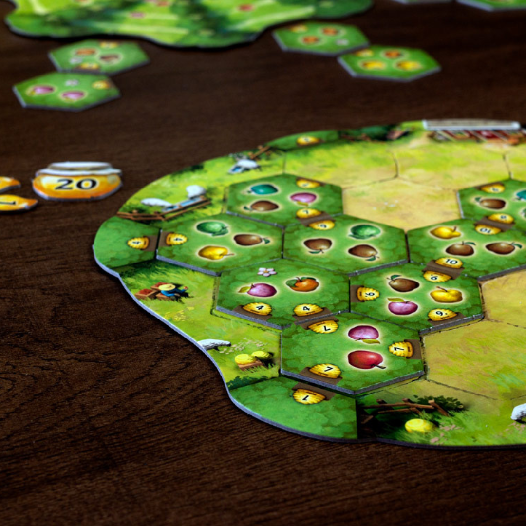 Un astuto juego de colocación de losetas. Un extenso huerto de árboles frutales se extiende frente a la cabaña de Applejack. Ayúdale a él y a su hija a cultivar y cosechar deliciosas manzanas. ¡No te olvides de colocar las colmenas entre los árboles, ya que el ganador de este juego tan «maduro» será el que más miel haya recolectado al final de la partida!