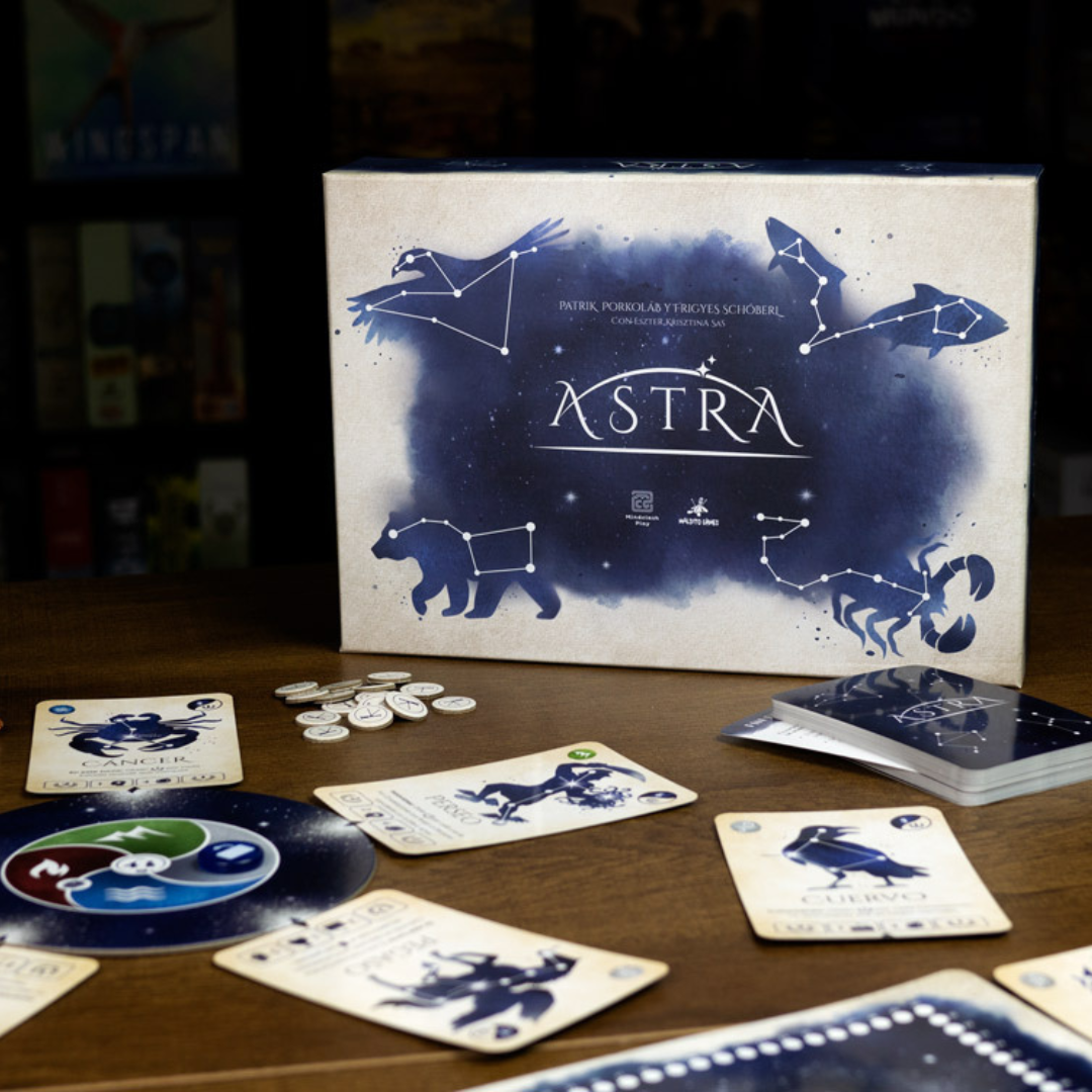 En Astra, grandes dioses, héroes legendarios y criaturas mágicas viven en las Constelaciones del cielo nocturno. Tú y tus compañeros de juego asumiréis el papel de Astrónomos con el objetivo de descubrirlos y darles vida.