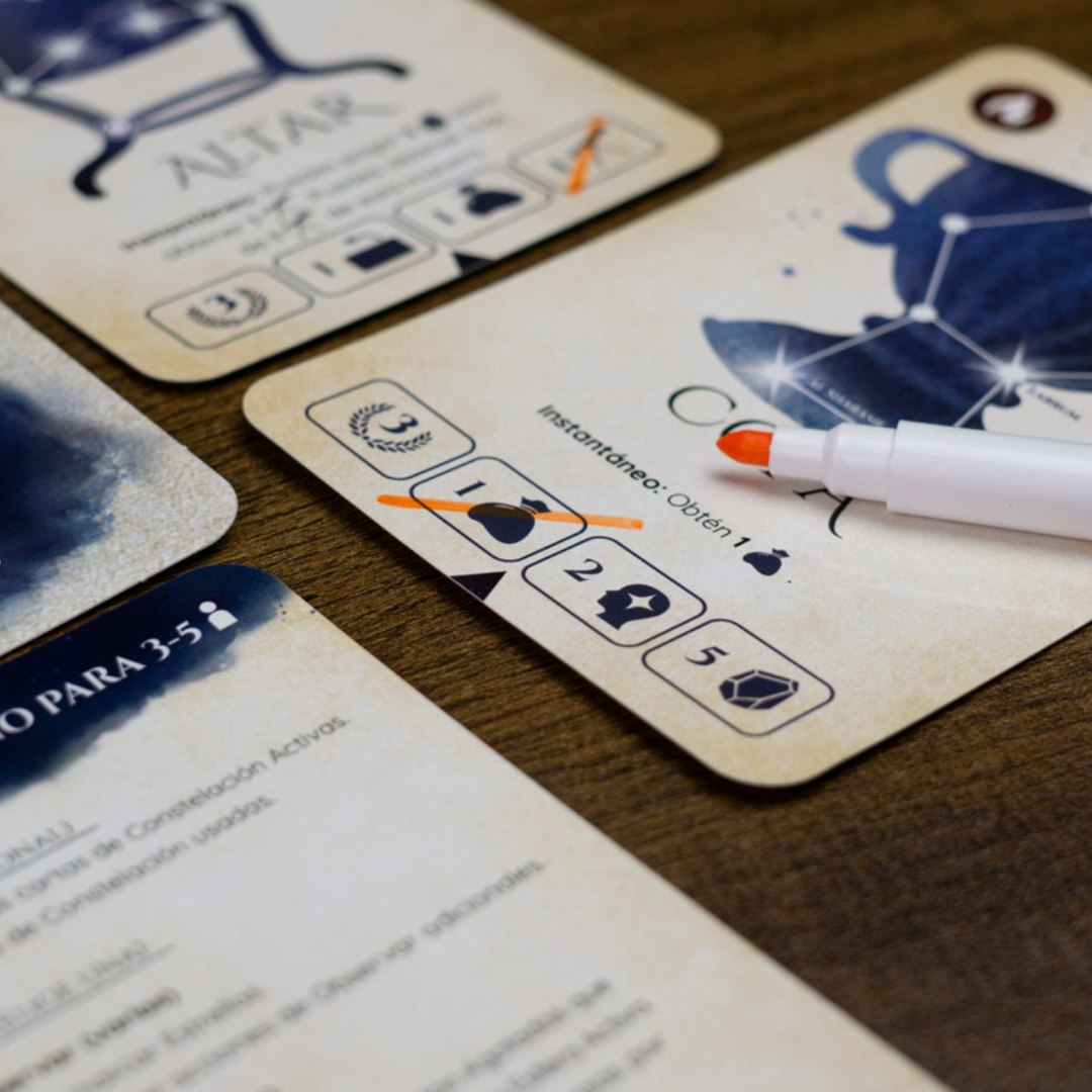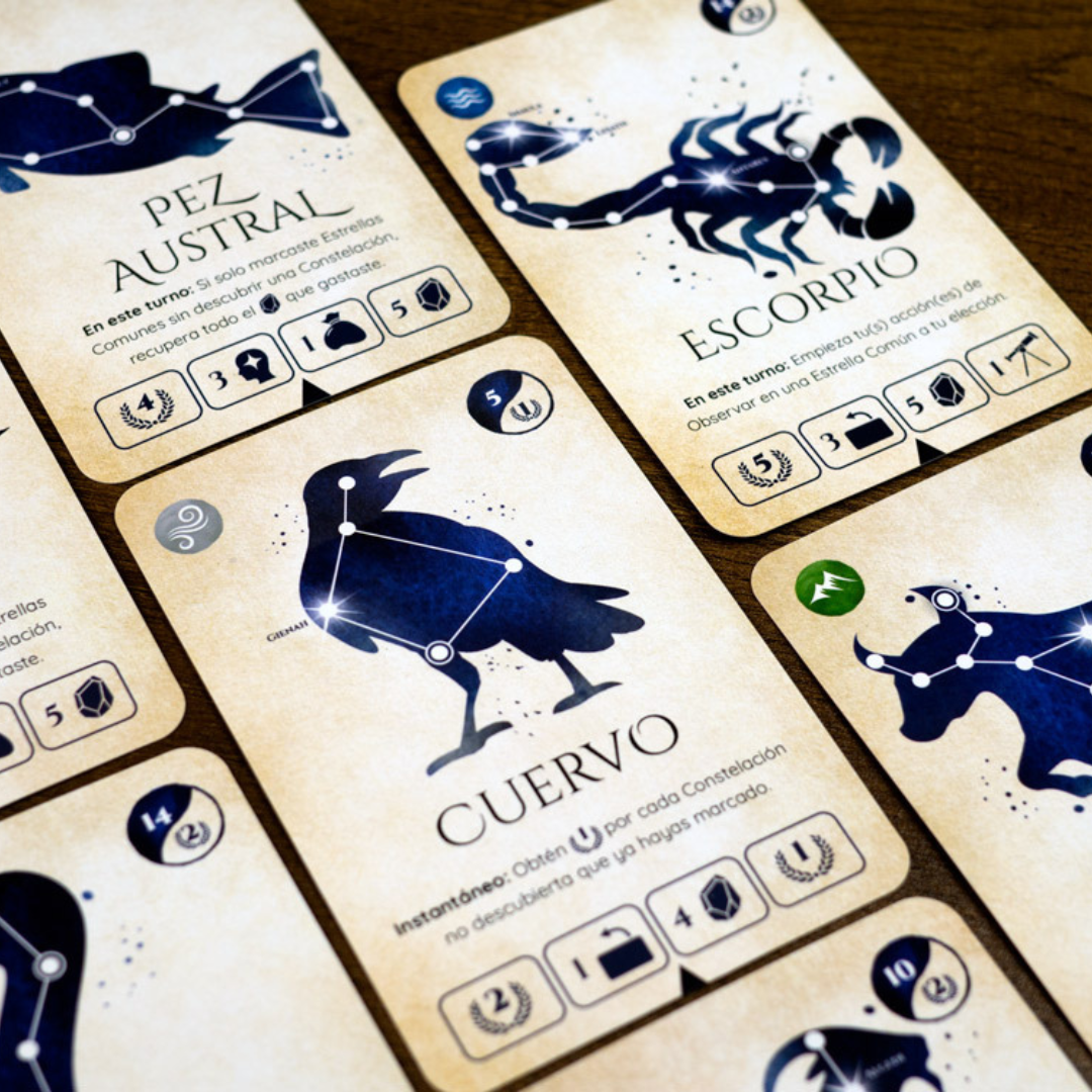 En tu turno, podrás recolectar y gastar Polvo Estelar para marcar Estrellas con tu rotulador, descubrir y reunir Constelaciones y obtener diversos Dones y Habilidades otorgados por las Constelaciones descubiertas. Además, también acumularás Fama por tus esfuerzos en la exploración del cielo nocturno. Ganará quien tenga más Fama al final de la partida.