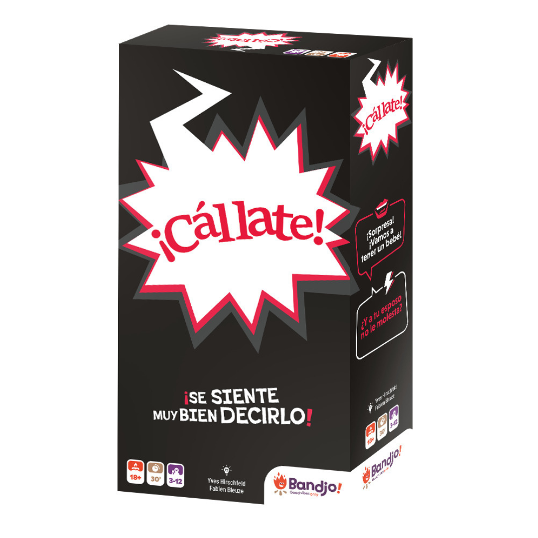 Con Cállate, súbele rápido al desmadre con diálogos loquísimos que tienes que leer con actitud. Es tu turno: agarra unas cartas rojas y lánzale a cada jugador una frase diferente, por ejemplo: “Una vidente me dijo que voy a tener trillizos.”