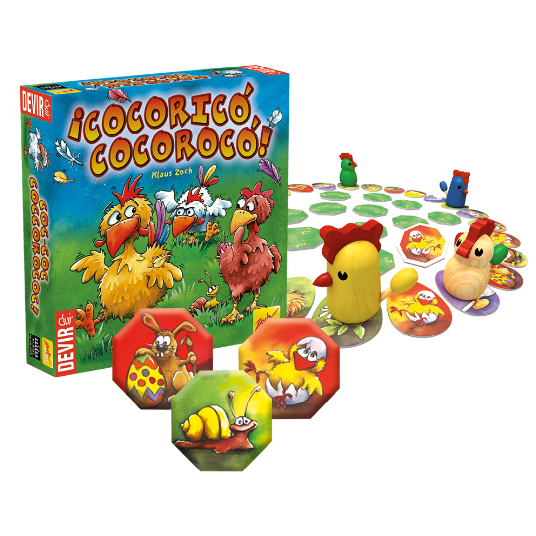 ¡Cocoricó Cocorocó! es un divertido juego infantil de Klaus Zoch en el que pueden jugar de 2 a 4 jugadores, a partir de 4 años, en partidas que duran entre 15 y 20 minutos. El objetivo del juego es llenar de plumas la cola de nuestro gallo o gallina, adelantando al resto de oponentes en una carrera frenética. Pero más que grandes patas y buenos muslos, para ser el más rápido del corral será imprescindible tener buena memoria.