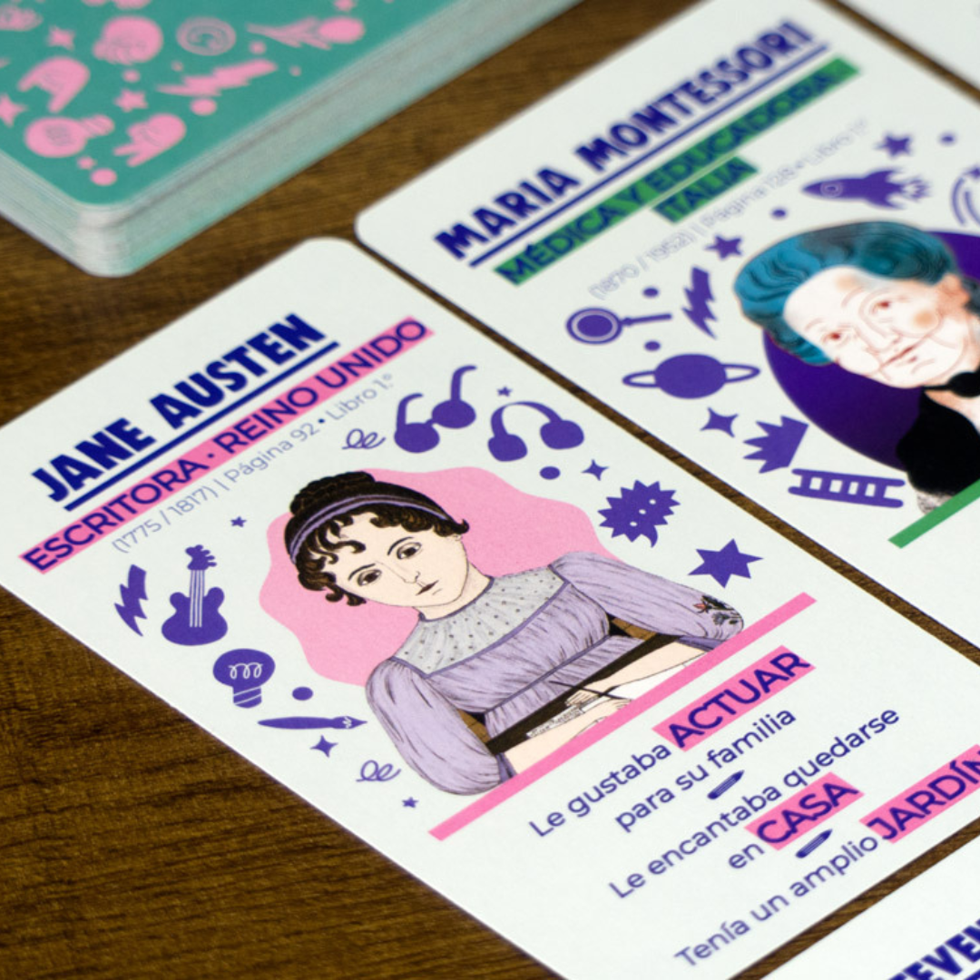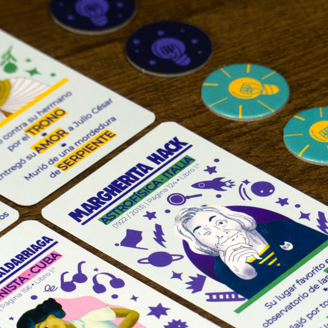 ¡Todos los jugadores ganan o pierden juntos! En cada ronda, un jugador tiene que conseguir que los demás adivinen una Mujer de las 9 que hay en la mesa, mostrando solo las cartas de pistas ilustradas. Da rienda suelta a tu imaginación y descubre más sobre las extraordinarias mujeres de Cuentos de buenas noches para niñas rebeldes.
