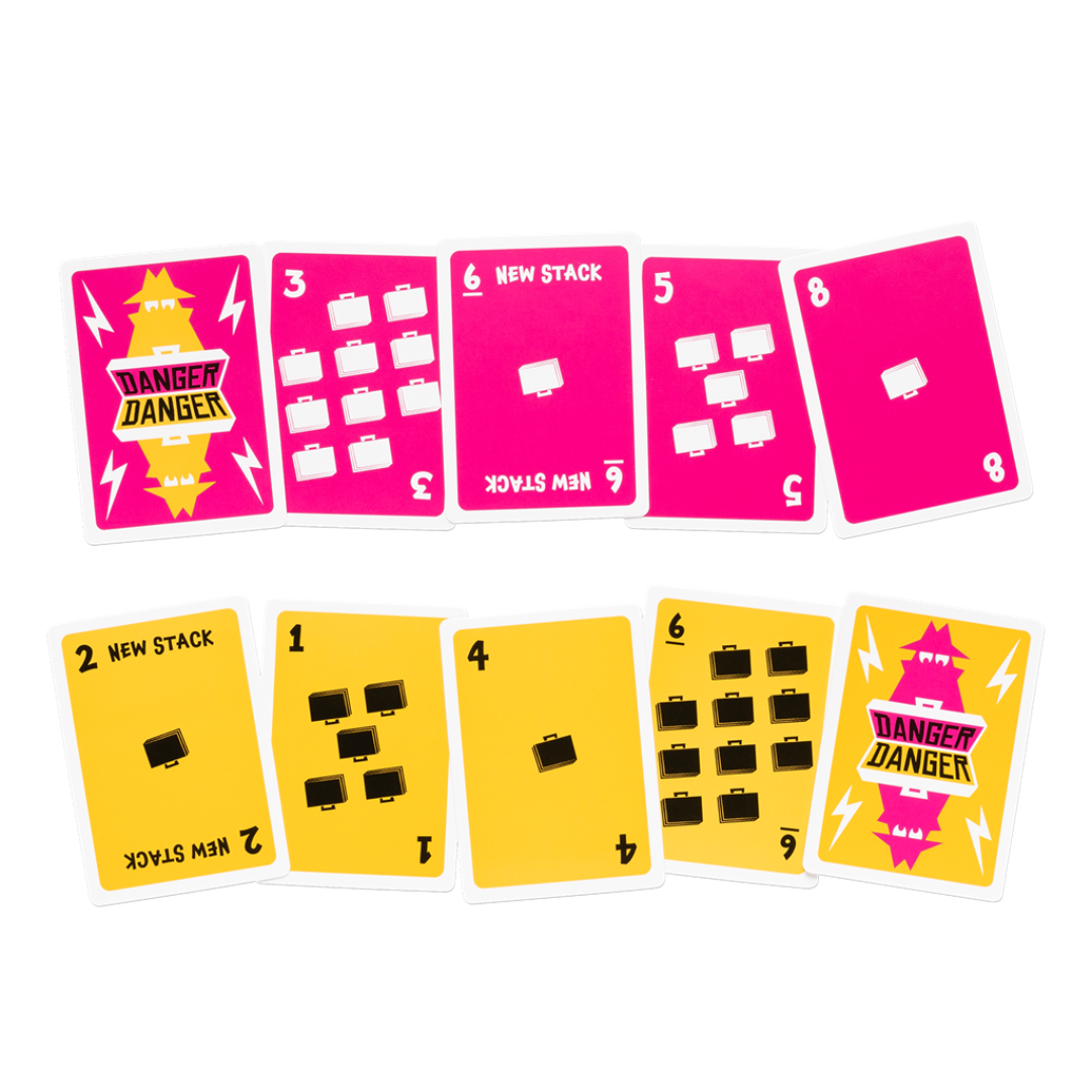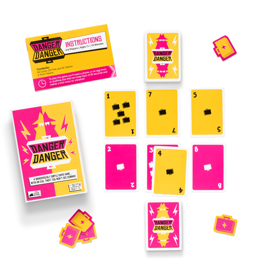 Danger Danger es un juego de cartas para 2 equipos. El objetivo es tener más Maletines visibles que el equipo contrario al final de cada ronda. Las rondas solo duran 60 segundos, para lo que necesitarás un teléfono, un temporizador de cocina o cualquier otra cosa que haga ruido, porque como te vamos a explicar en un momento ese lÃmite de tiempo es muy, muy importante.
