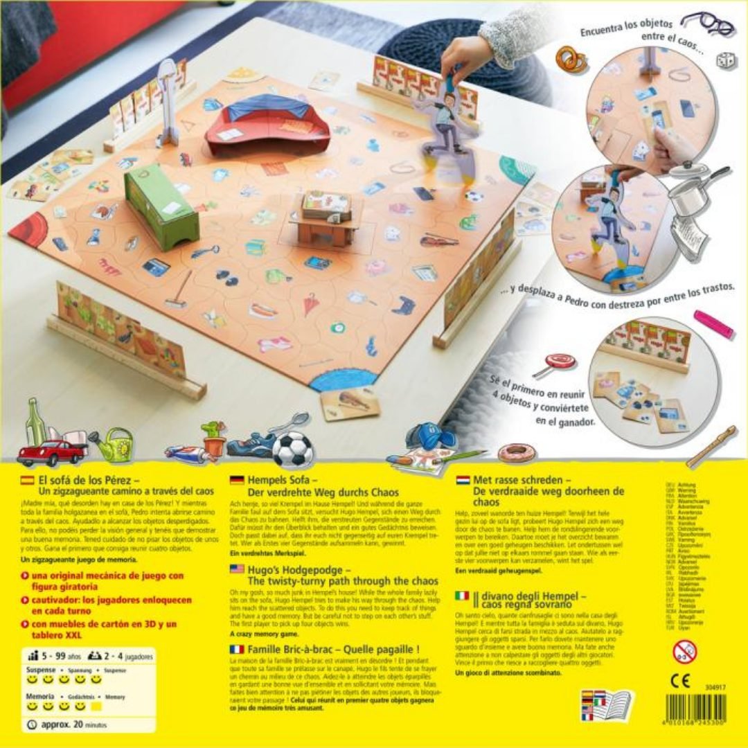 ¡Qué desorden hay en casa de los Pérez! Y en medio está Pedro Pérez abriéndose camino entre el caos. el sofá de los Pérez es un original un juego de mesa para niños de HABA de memoria y habilidad.