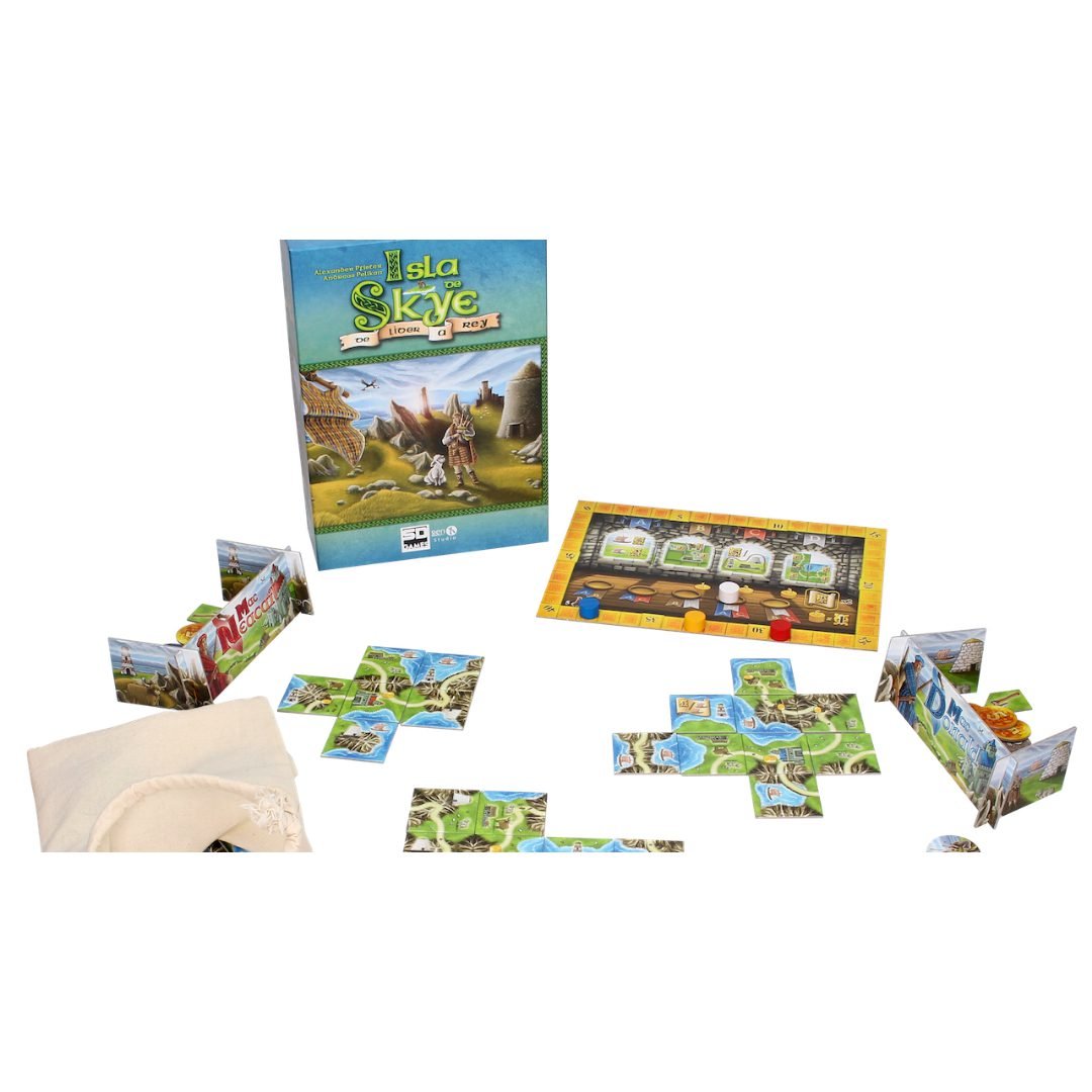 Hace cientos de años, sin embargo, la situación no era tan pacÃfica: 5 clanes competÃan por su dominación; cada uno intentaba conseguir las mejores franjas de tierra del otro, y vender las peores por un montón de dinero. ¿Te convertirá tu pequeño reino en rey de la isla? Isla de Skye es un juego ágil y rápido de colocación de losetas y subastas, con reglas simples y mucha diversión. Y con ovejas lanudas!