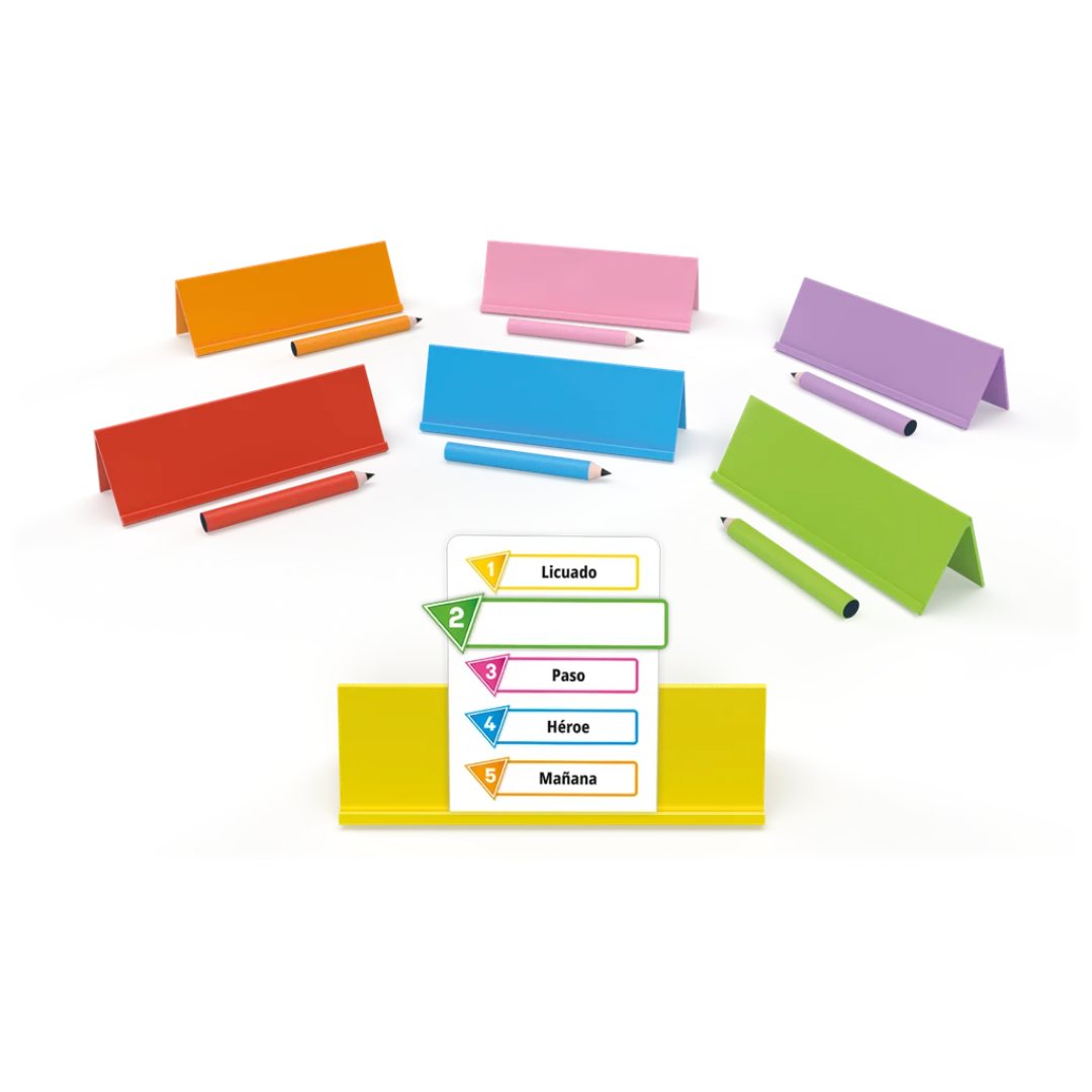 Jugar en equipos es también una buena forma de aprender. Los estudiantes en equipos tendrán que ponerse de acuerdo sobre qué palabra escribir en su tarjeta, lo que significa que a veces se enfrentarán a dilemas… Cada estudiante tendrá su propia opinión sobre la mejor palabra para escribir. Sin embargo, aunque cada alumno puede sugerir una idea y proponer su propia solución, tendrán que ponerse de acuerdo en una sola palabra. Esta puesta en común de ideas lleva a cada alumno a evolucionar su idea original en una nueva propuesta aceptada.