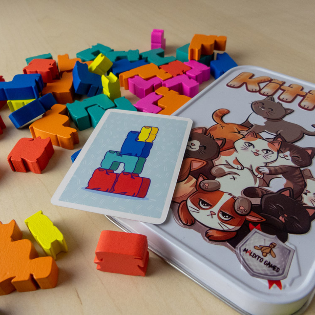 Compite apilando gatitos tan rápido como puedas siguiendo el patrón de las cartas. El primer jugador en obtener 3 cartas será el ganador de la partida y es nombrado LÃder de Mimos Gatunos.  En Kittin cooperativo baraja las cartas y reparte 4 bocabajo formando un cÃrculo alrededor de los gatitos del centro de la mesa. El primer equipo que construya los 4 patrones en orden, uno tras otro, y grite «¡Miau!» es el ganador. Los jugadores de ese equipo son nombrados LÃderes de Mimos Gatunos.