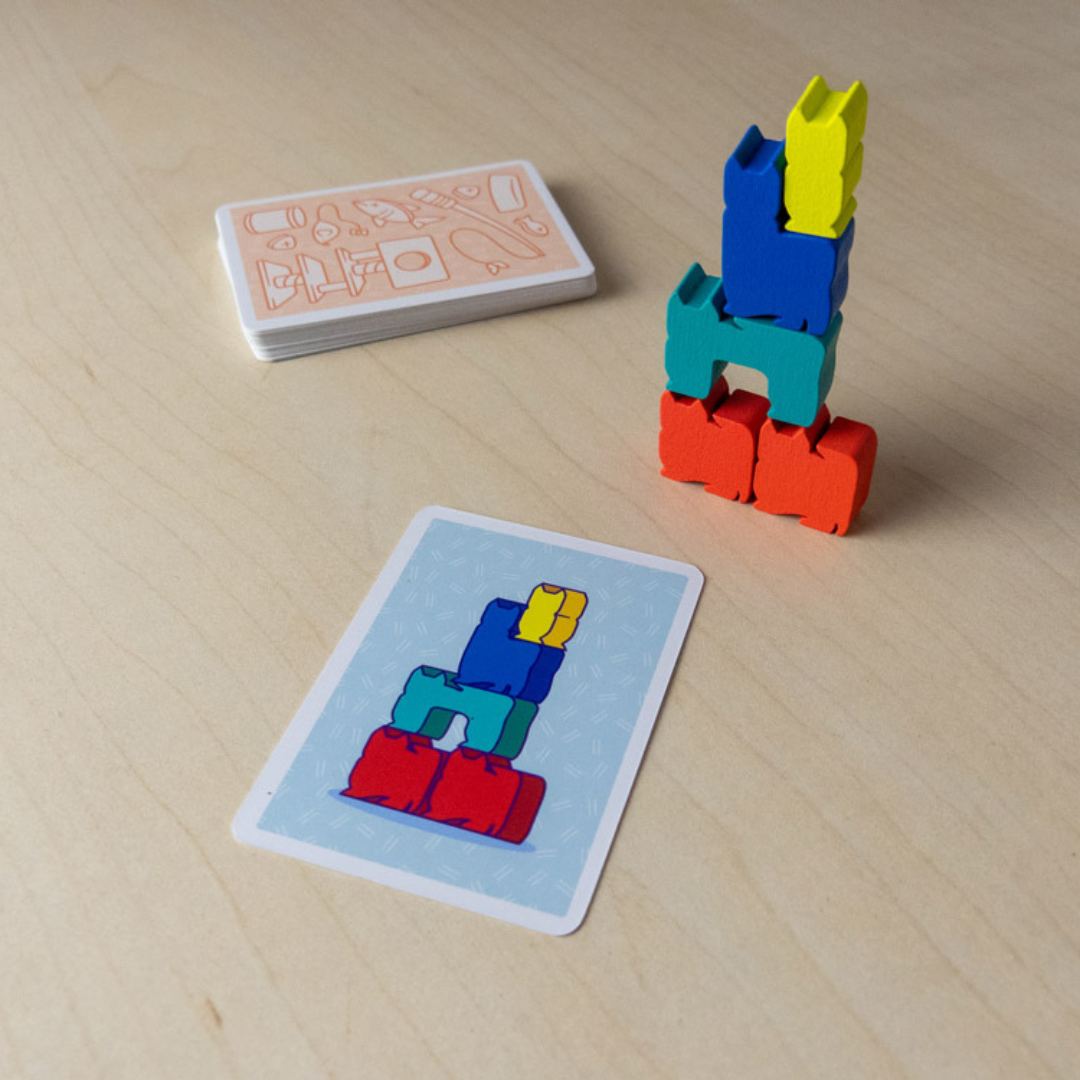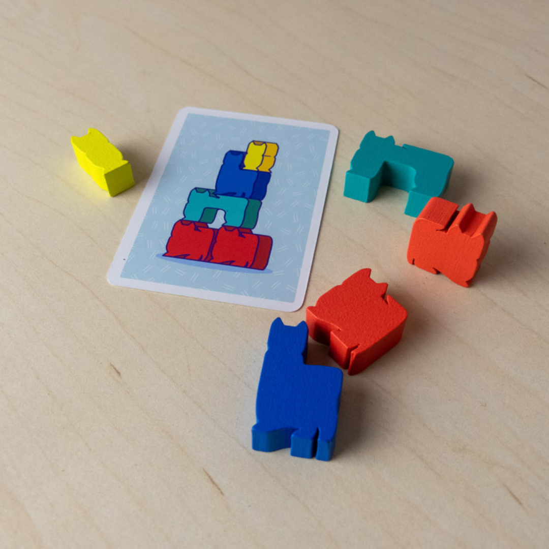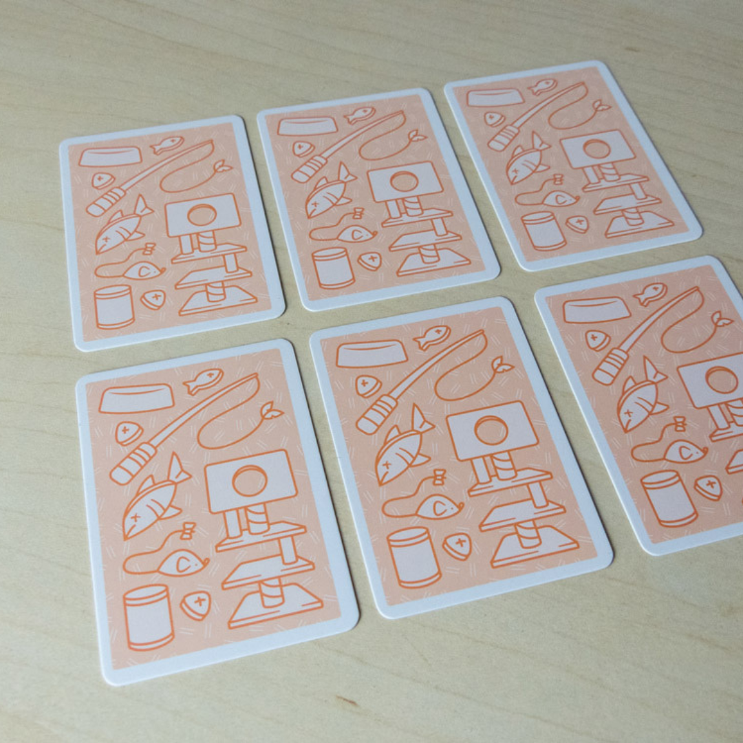 Coloca todos los gatos en el centro de la mesa. Baraja las cartas y forma un mazo bocabajo junto a los gatitos. Hasta 4 jugadores pueden jugar individualmente, o podéis dividiros en equipos de 2 y ser 4,6 u 8 jugadores.