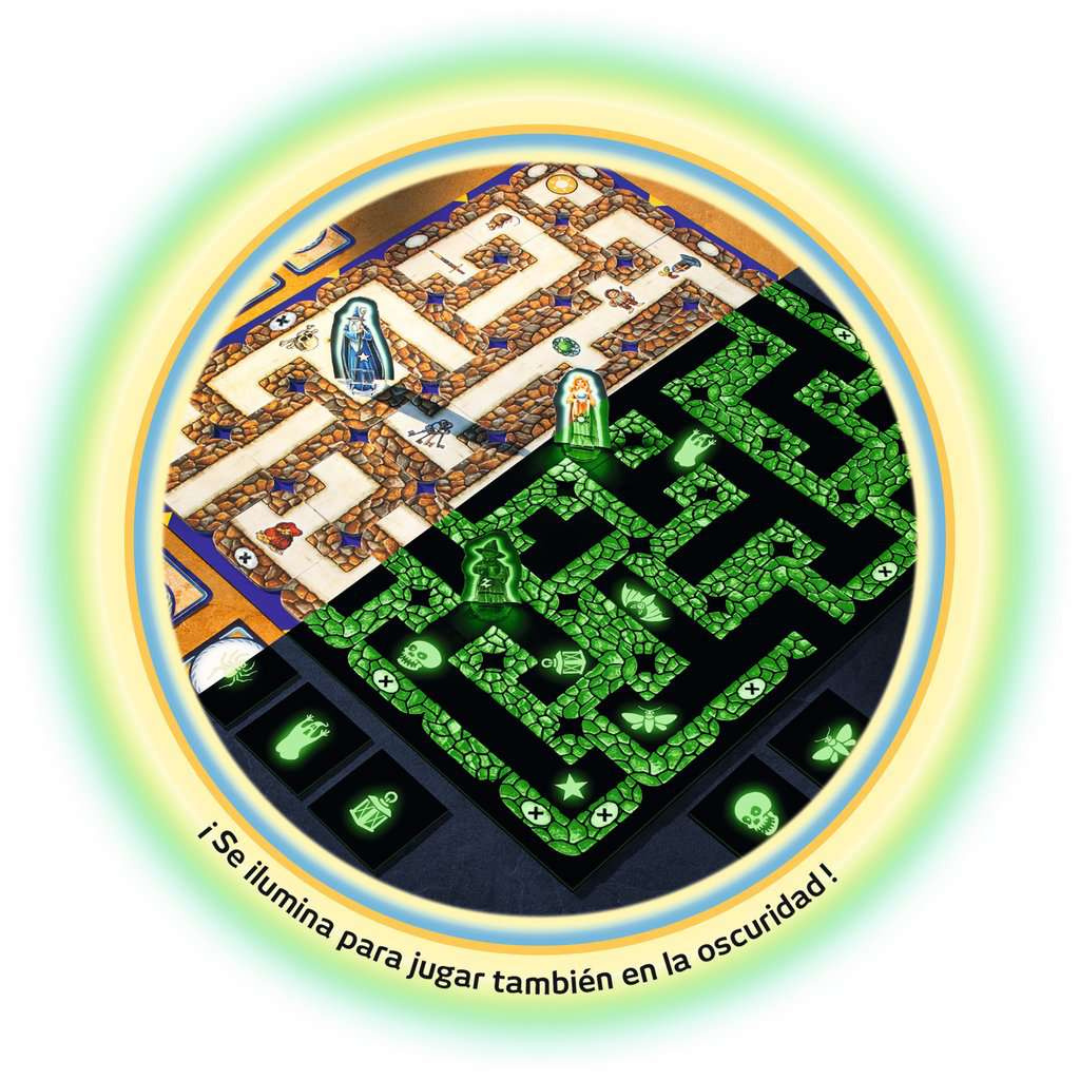 Dos variantes del juego: El clásico laberinto a la luz de la mañana, o la búsqueda nocturna de los objetos… ¡que brillan en la oscuridad! Los elementos se iluminan para jugar una divertida partida en la oscuridad