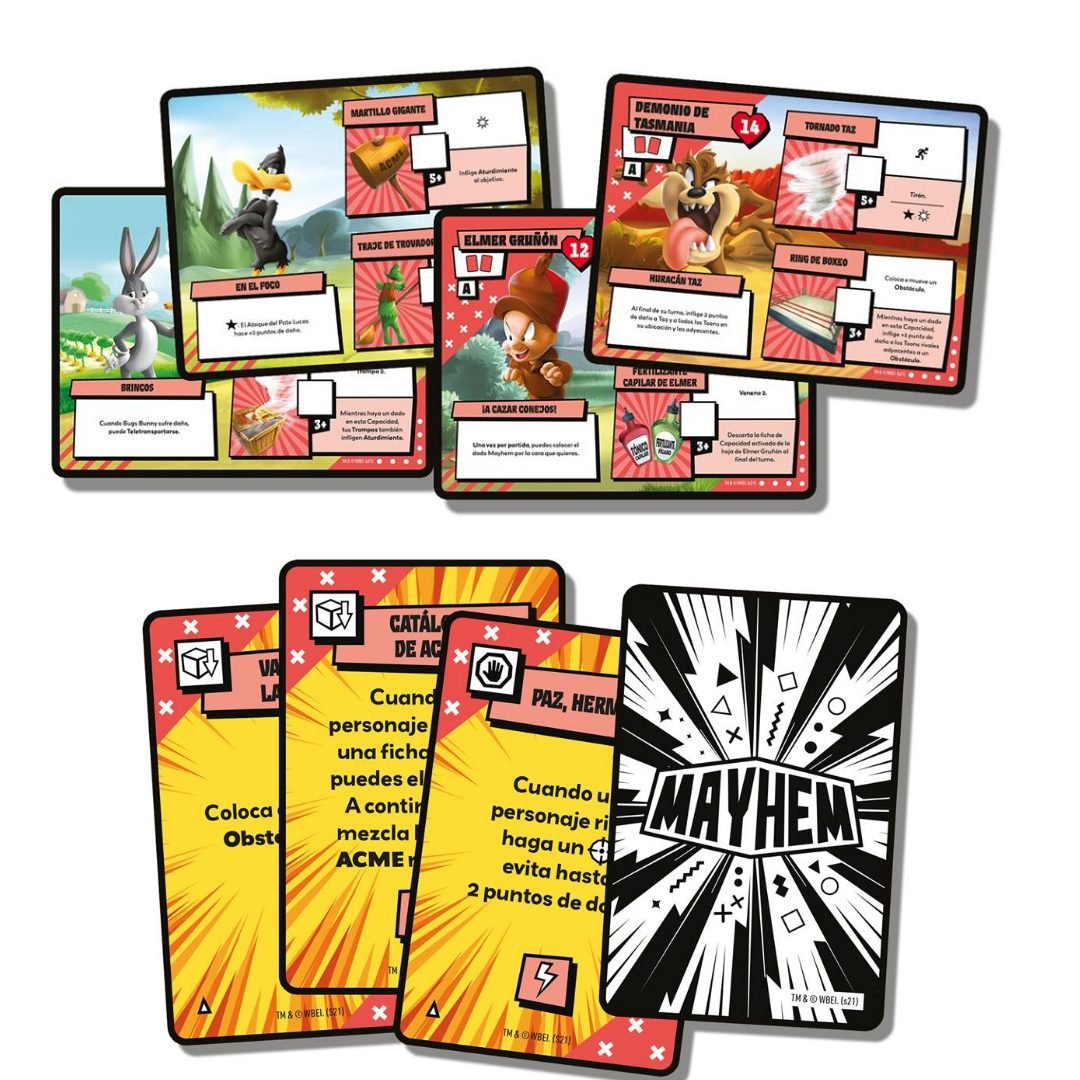 En esencia, el sistema Mayhem consiste en ganar Puntos de Victoria hasta que un equipo obtenga cinco de ellos y gane la partida. El método más expeditivo para que un equipo gane dichos puntos es noqueando a sus oponentes y para ello los jugadores usarán una amplia variedad de objetos y poderes en su lucha contra el equipo enemigo. Cuando un personaje es noqueado, se retira del tablero y su oponente gana puntos, pero que nadie se preocupe porque al fin y al cabo es un juego basados en dibujos animados… ¡En la siguiente ronda volverán a la acción!