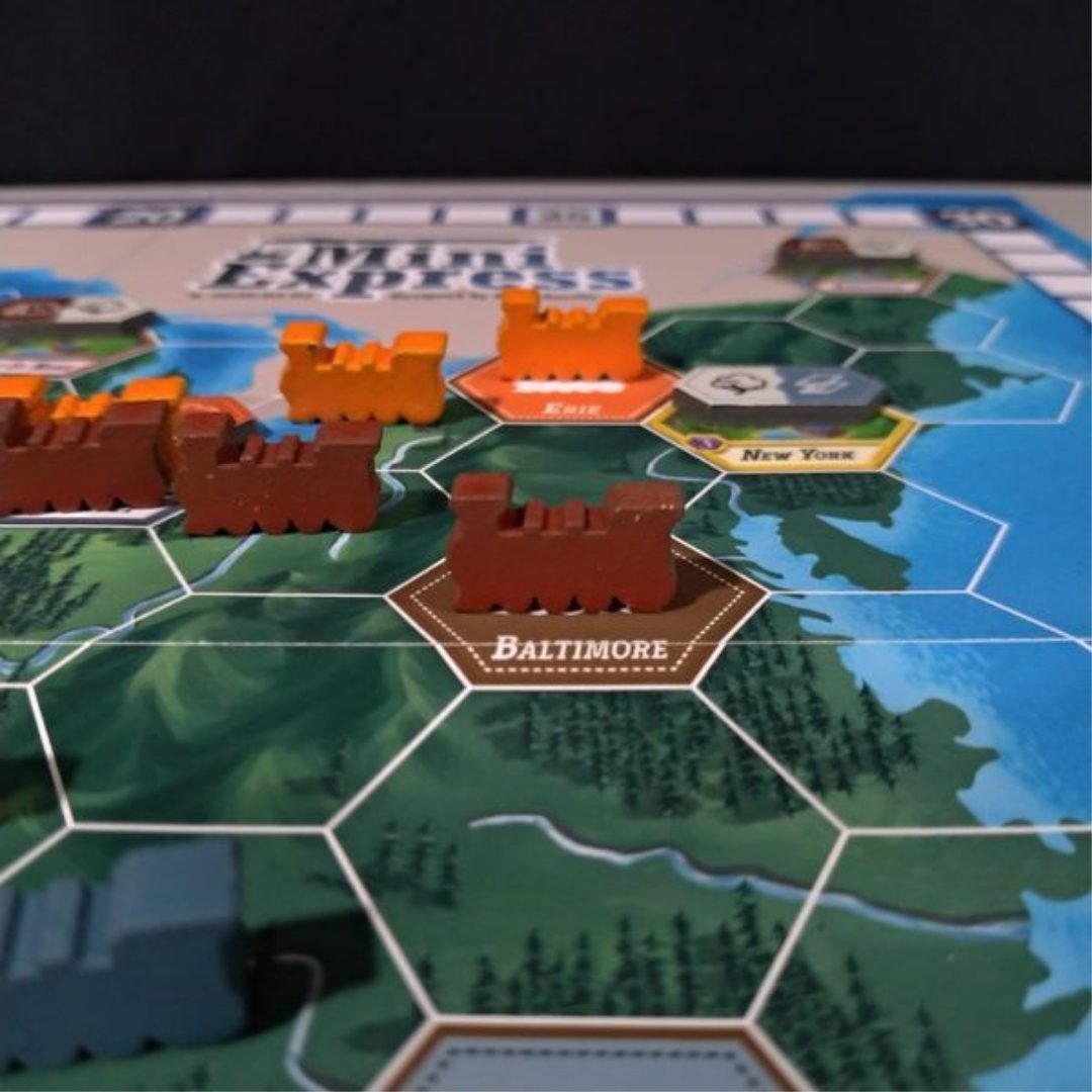Poderosas compañÃas ferroviarias se abren paso de este a oeste en la nueva potencia mundial que es Estados Unidos a principios de siglo. Cuatro empresas que luchan por el control del territorio, las mercancÃas y recursos emergentes y el valor total del mercado. Mini-Express es un tÃtulo ideal para iniciarse en los juegos ferroviarios y de género económico. Sencillo y directo, los jugadores decidirán entre dos acciones de fácil explicación pero con gran carga estratégica. Unos componentes Deluxe, un sistema de juego rápido y partidas de cuarenta y cinco minutos, hacen de Mini-Express un tÃtulo perfecto para disfrutar con nuevos jugadores y plantear un interesante reto a los expertos.
