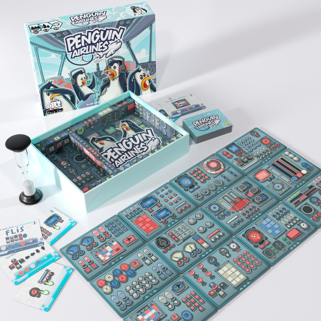 La compañÃa aérea con menos requisitos para sus pilotos, comienza su andadura comercial. ¡Suerte durante el aterrizaje! Un divertido Party Game para jugar por equipos, de 2-8 jugadores, 20-30 minutos de duración. En Penguin Airlines destaca una mecánica de agilidad visual y comunicación en combinación con la inquietante presión del tiempo.