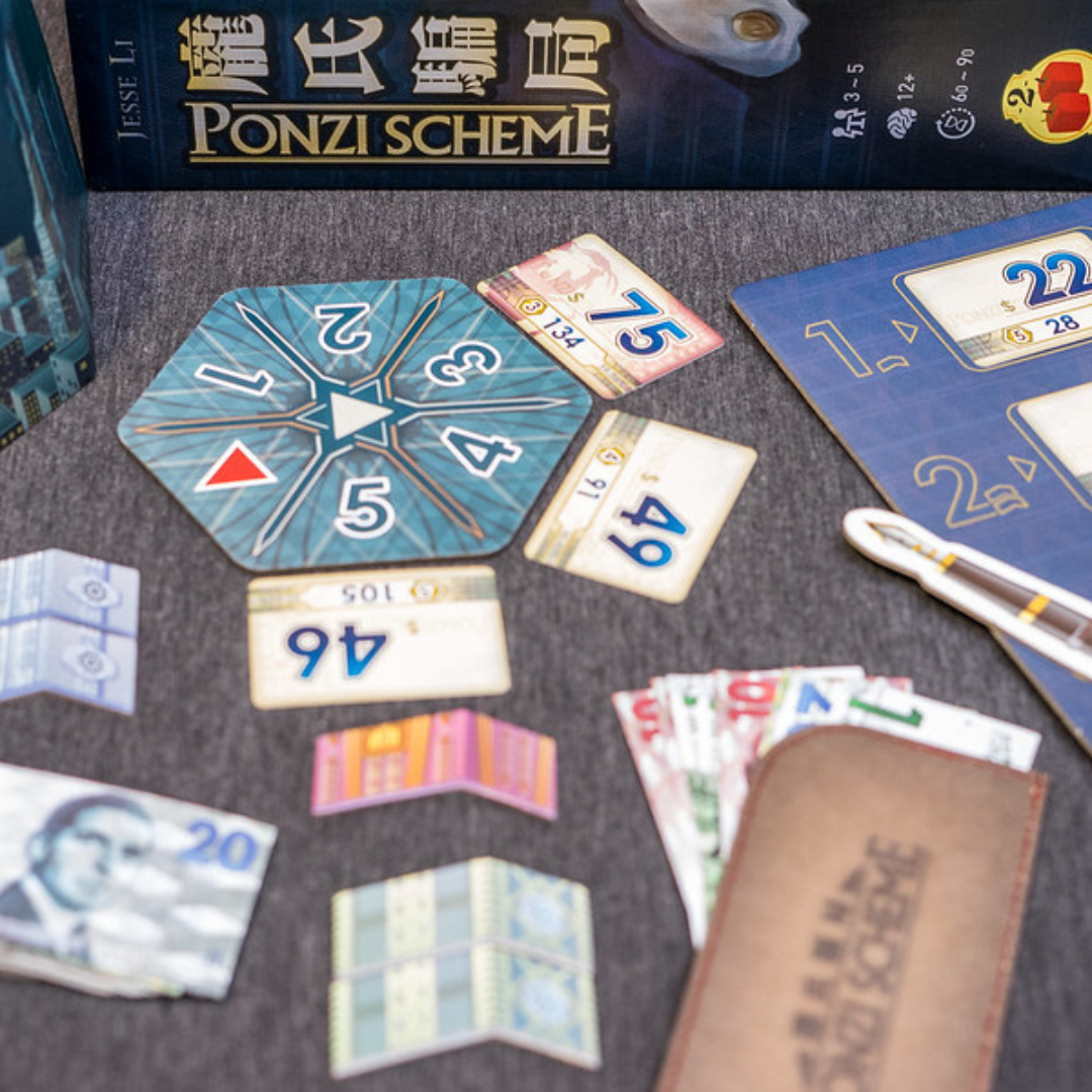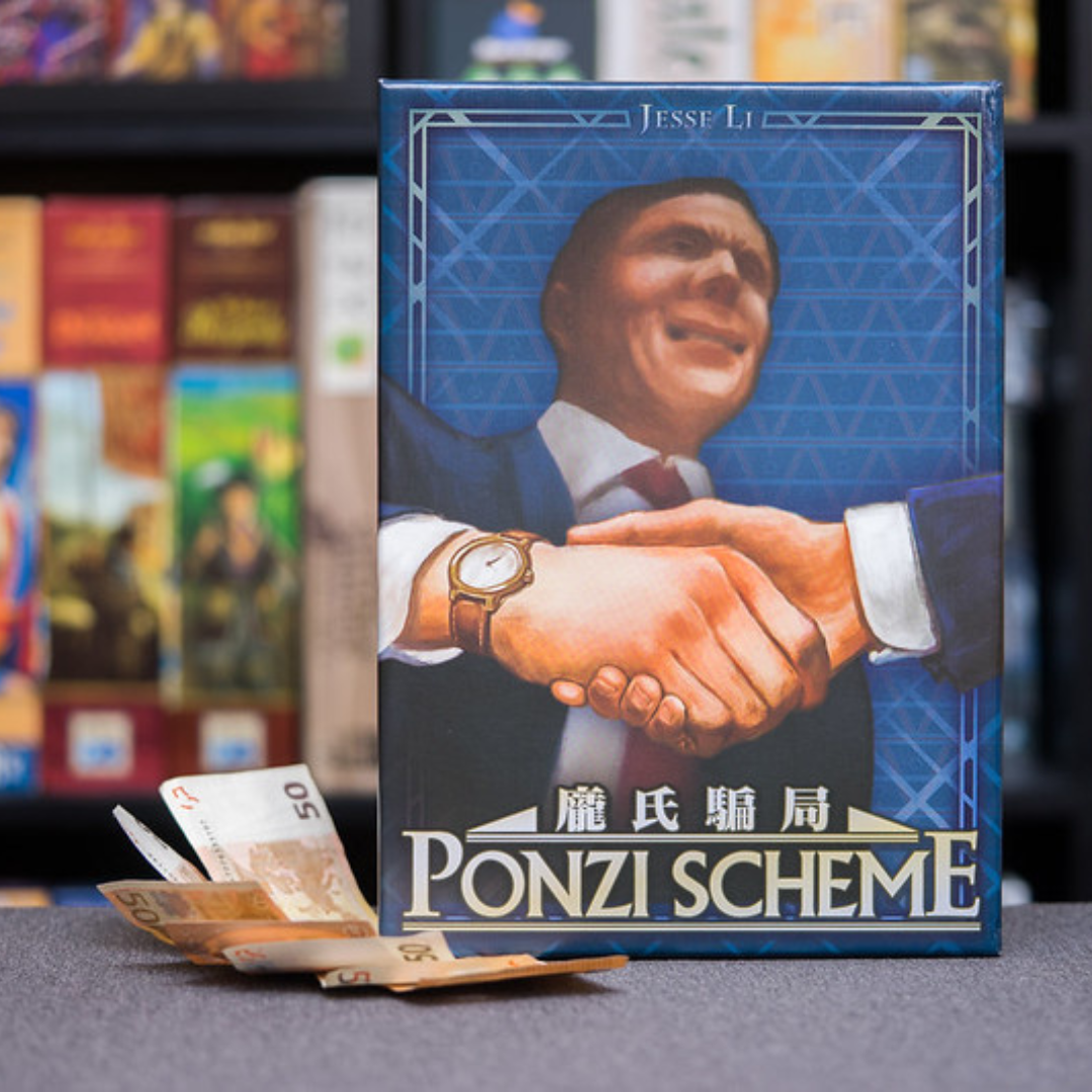 «Ponzi Scheme» es el término utilizado para describir la técnica que utilizó Charles Ponzi en 1919 para crear el mayor escándalo financiero de la historia. Los jugadores encarnarán a timadores e intentarán conseguir fondos de inversores que a su vez se utilizarán para pagar los dividendos de los viejos inversores… y mantener la rueda del engaño girando hasta que uno de los jugadores se quede sin fondos. En ese momento, se acabará la partida y el jugador con la mayor corporación será el ganador.