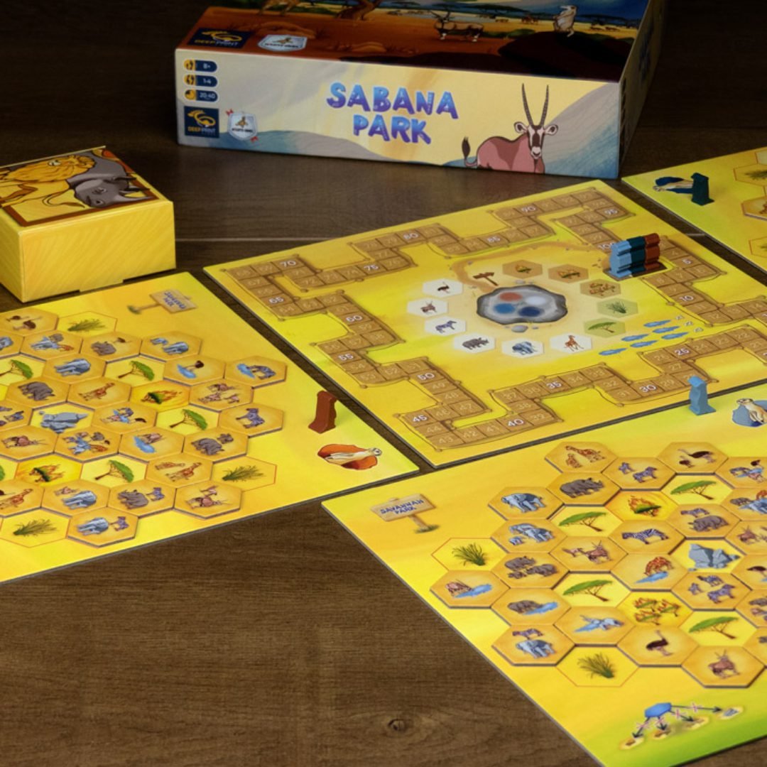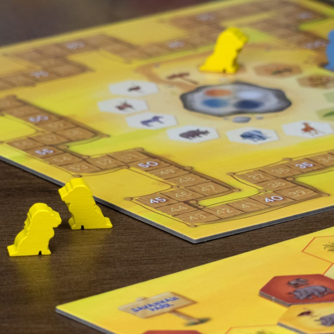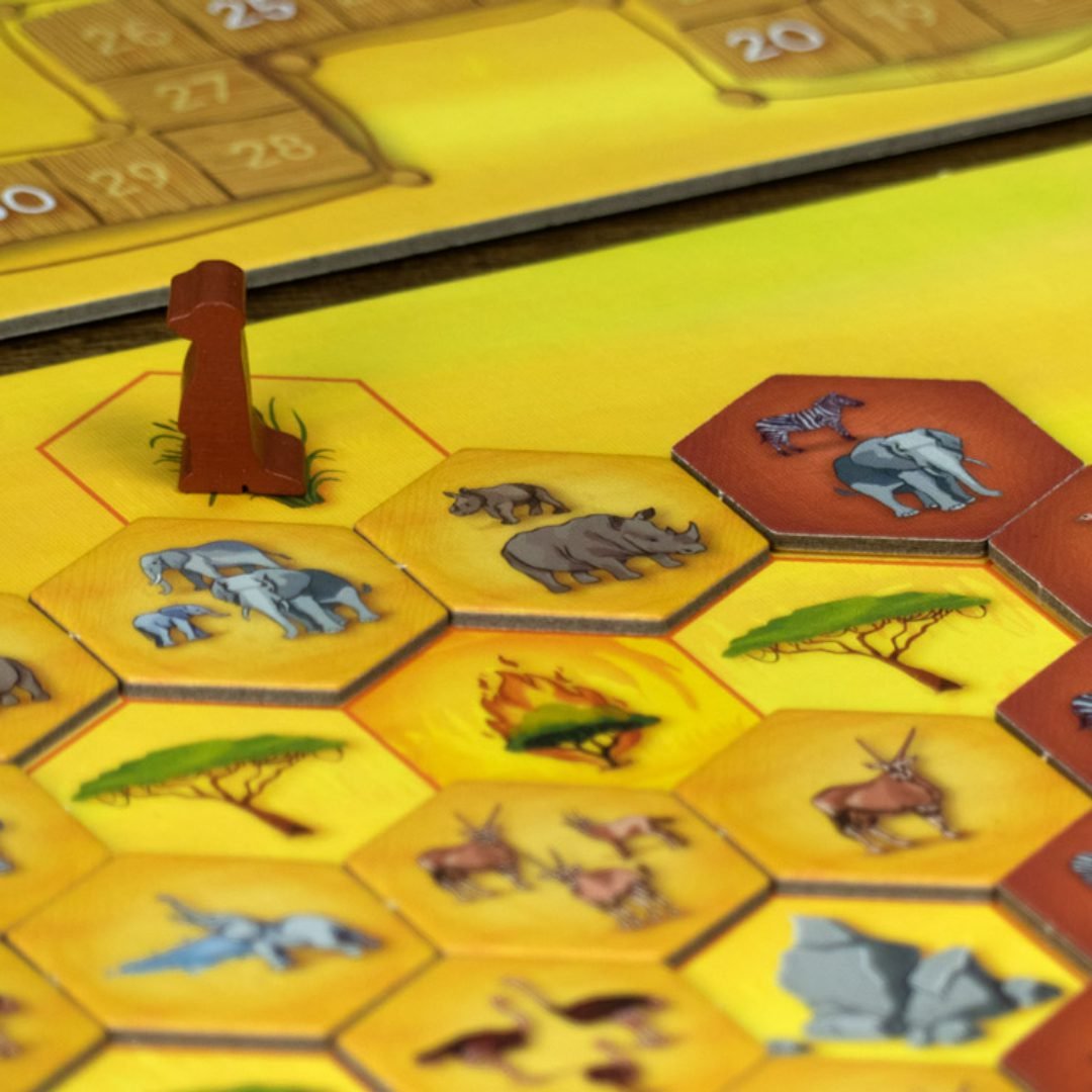 Vigila la enorme sabana, mueve tus fichas de Fauna con astucia y, al ponerse el sol, suma tus puntos.