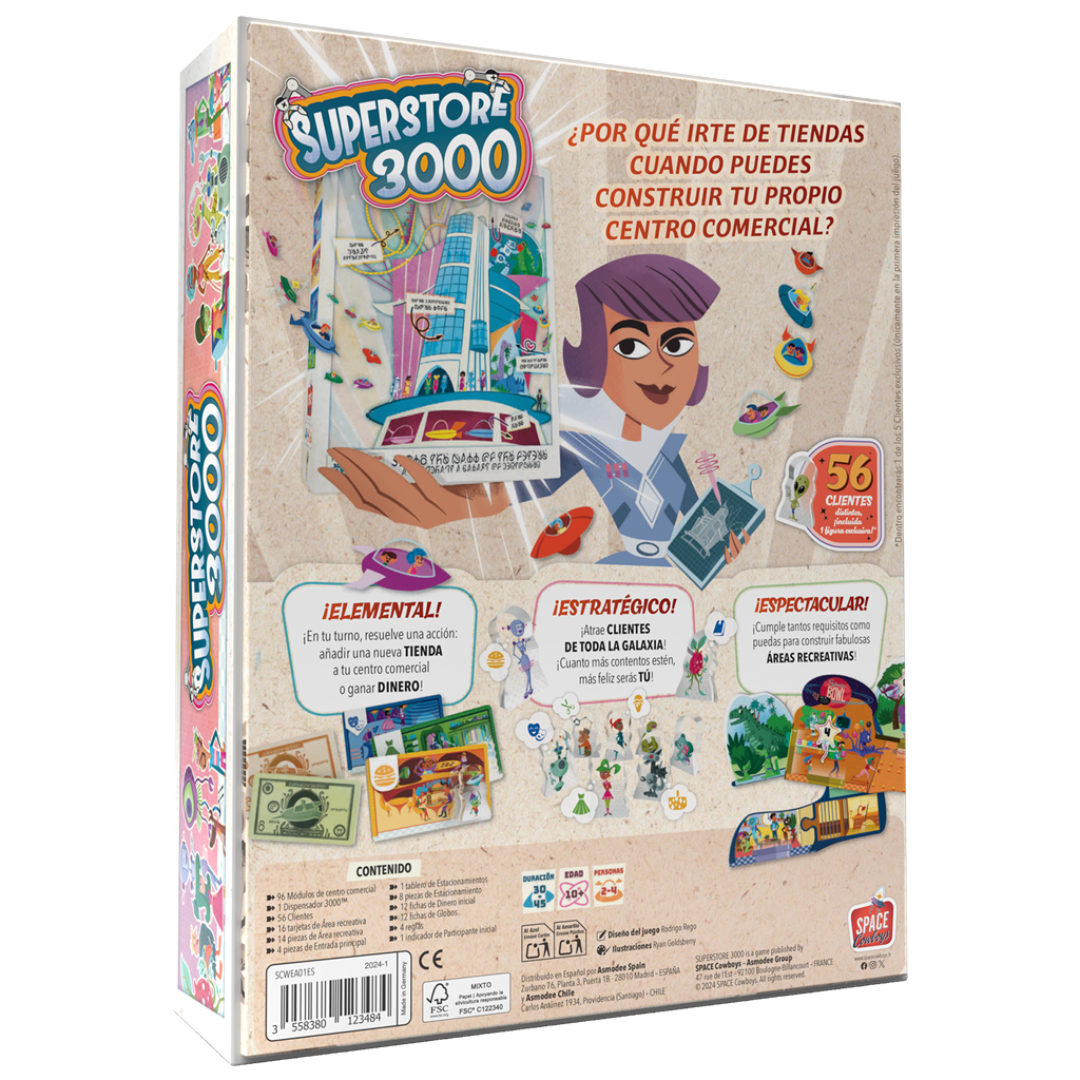 En Superstore 3000, el nuevo juego de Space Cowboys con diseño de Rodrigo Rego y arte de Ayan Goldsberry, sois ingenieros aspirantes en una competición por construir el centro comercial más extraordinario de todos los tiempos. Vuestro cometido es hallar la combinación idónea de tiendas y áreas recreativas para satisfacer las exigencias de los clientes que visiten vuestra creación.