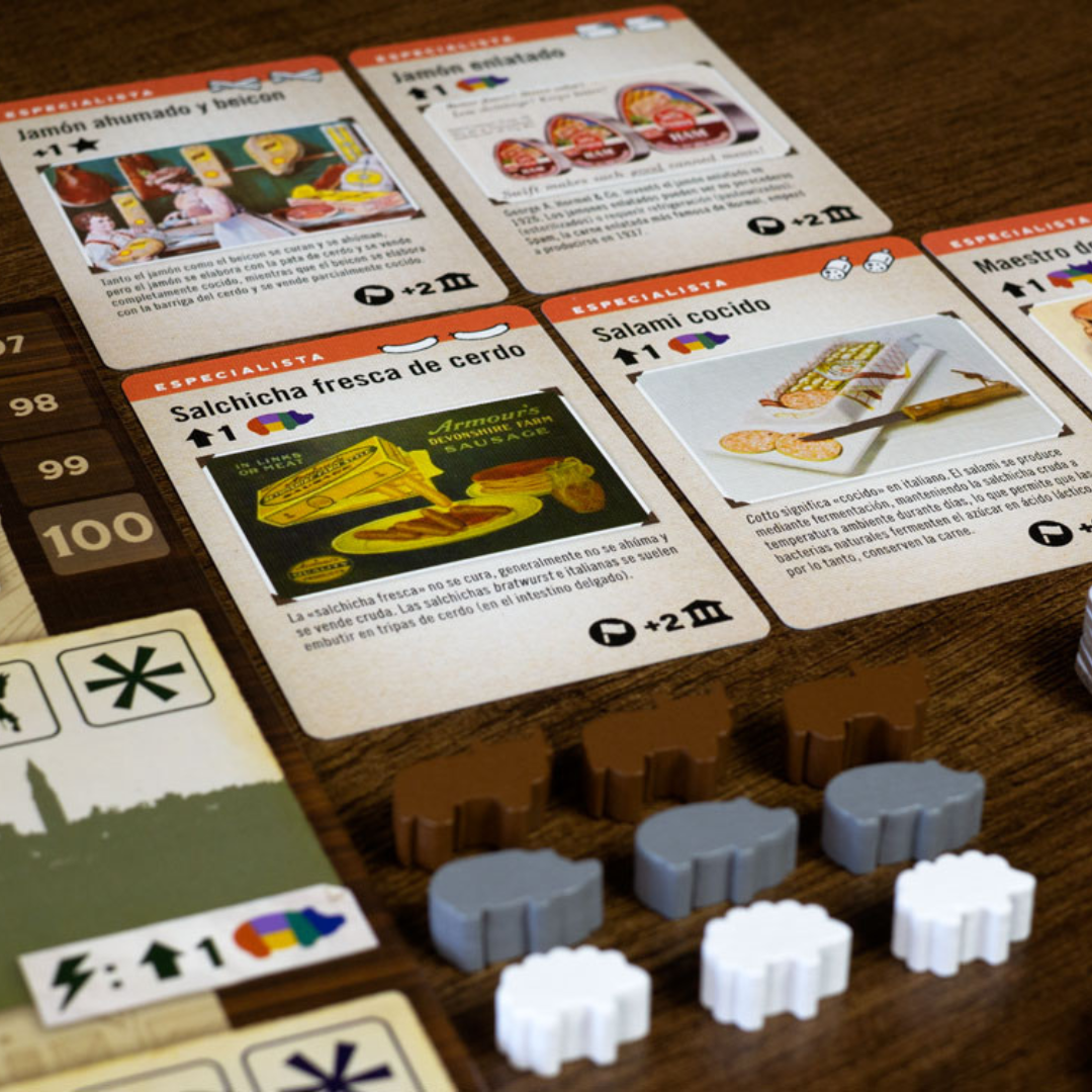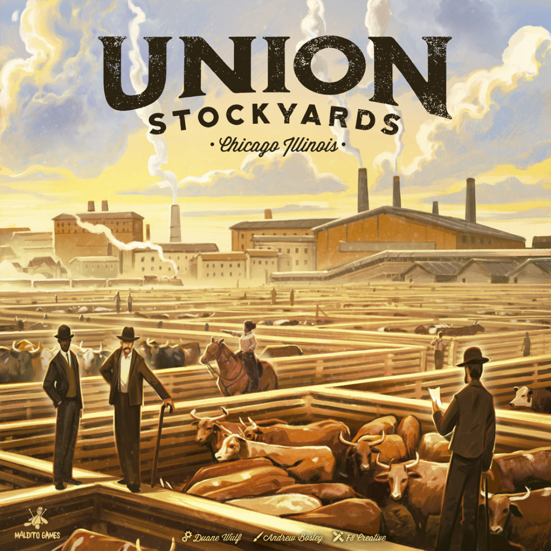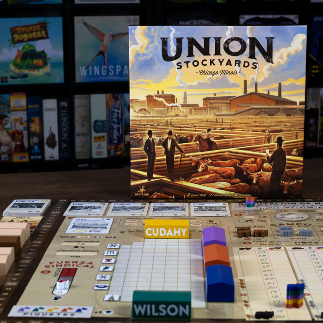 En Union Stockyards, asumes el papel de uno de los «cinco grandes» procesadores de carne: desarrolla tecnologÃa para aprovechar todas las partes del animal mientras luchas contra los sindicatos y manipulas el mercado en tu propio beneficio. Obtén efectivo gracias a tus márgenes de beneficio, que resultan de restar al valor de tu carne el precio del ganado y que definirás con tus decisiones: construir edificios, establecer sucursales en los mercados del este y mejorar la reputación de tu marca. El precio del ganado variará en función de la demanda que los jugadores generen de cada animal. ¡El jugador que acumule más riqueza será el ganador!