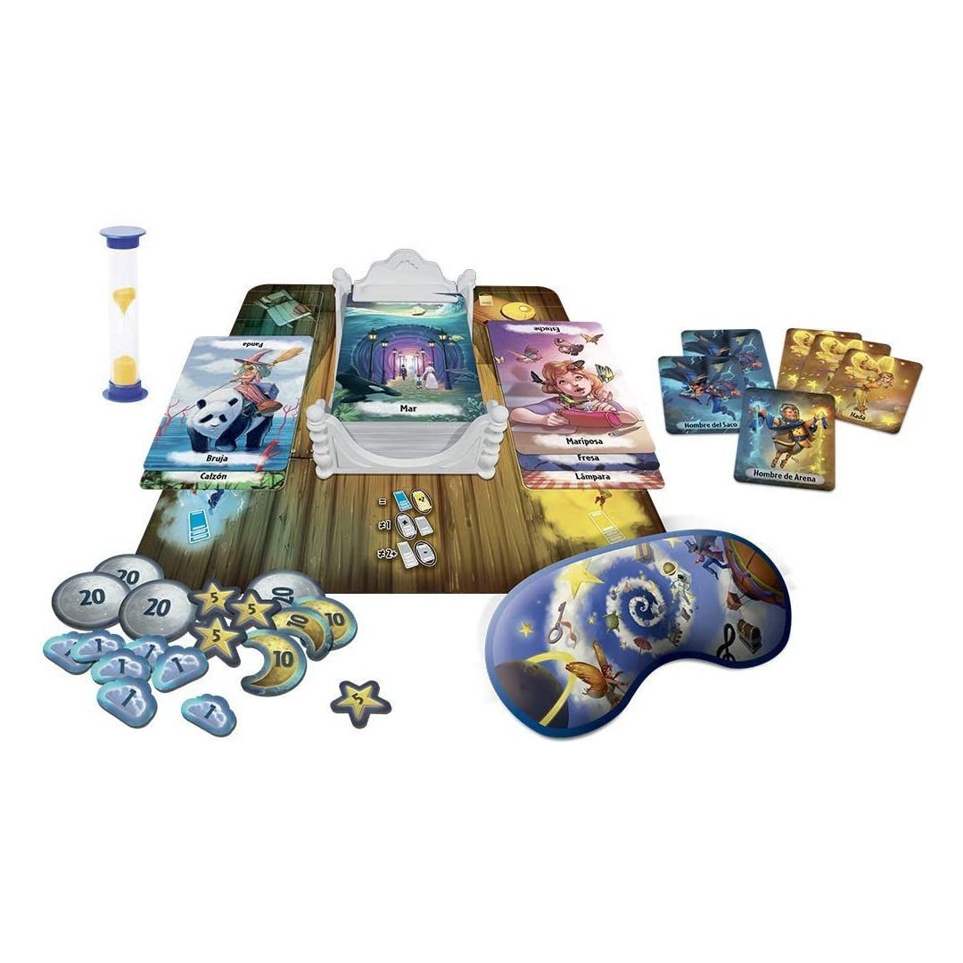 ¡Atrévete a soñar! En When I Dream uno de los jugadores sueña y coloca una Máscara sobre sus ojos. El resto de jugadores son EspÃritus del Sueño, que describirán las cartas utilizando una única palabra cada uno. ¡Pero ten cuidado con los Hombres de Arena y los Hombres del Saco, que intentarán que el Soñador pierda su camino!